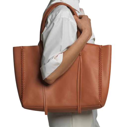 Many people opt for leather because it is longer lasting while vegan leather made out of plastic can degrade and flake more quickly. If you are vegan, you can opt for nylon or coated canvas totes for better durability.